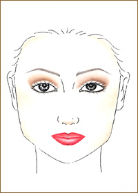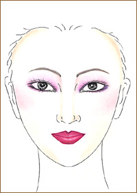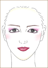 5. 腮红:略带狭长型,以修饰方型脸带角度之缺憾,修饰其角度,达到狭长之效果。